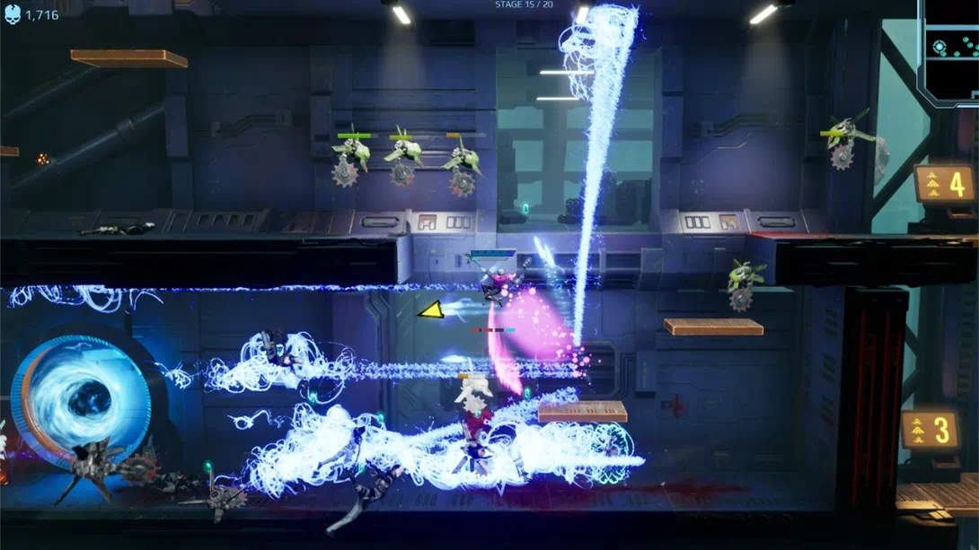 快节奏战斗:强调冲刺移动与连击机制,需在太空城市场景中灵活闪避敌人攻击。