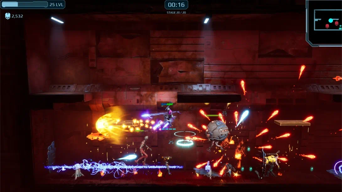 《Adrenaline Rampage》(暂译:肾上腺素狂暴)是一款融合roguelite元素的平台动作游戏,设定在黑暗科幻世界观中,玩家需操控士兵对抗机械僵尸军团。以下是核心信息整理: