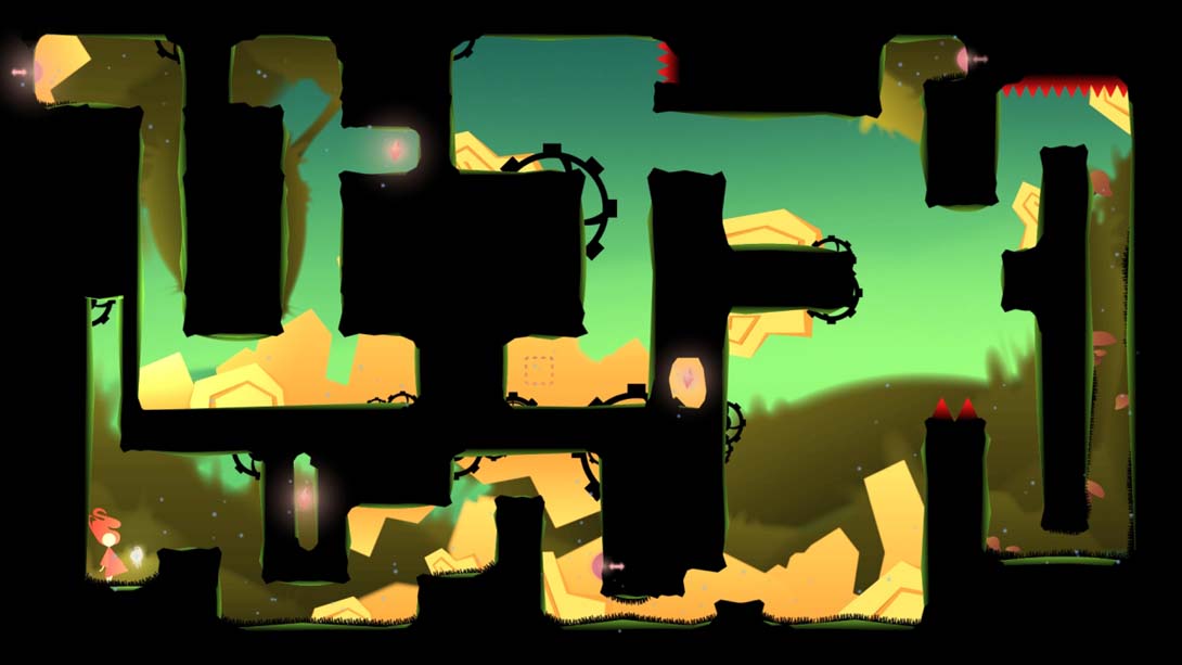 本作的关卡虽然是传统的横版过关模式,玩家只需收集物品后打开通往下一关的大门或是击败敌人即可。而本作的创新之处则在于玩家的移动方式——主角必须变成方块后才能朝着一个方向进行滑动,在滑动其间玩家只能进行跳跃。只有碰到墙壁后,才能通过反向跳跃的方式改变移动方向。在游戏前期,玩家只需对主角进行简单的操控即可轻松过关;到了中期,玩家就需要对机关和敌人进行分析与回避,同时还要思考如何调节主角的行动姿态;到了后期,机关的设计变得更加精巧,每个道具都会对整个关卡造成多重的影响;而几场独具特色的boss战更是考验着玩家的脑力与反应。在新加入的双人模式下,双主角的设定又让游戏对于玩家的理解力以及逻辑思维能力的要求又获得更深层次的提高。玩家所操控的两名角色有时候会处于同一关卡的不同位置,需要相互配合来解开机关;还有的时候则必须协同一致,只有保持她们的动作不出现偏差才能顺利通关。这样的设计让原本单一的线性关卡变得更有层次感,也让玩家在解谜的过程中需要同时考虑到多个位置的状况。从谜题难度纵深的层面上来看,本作可以称得上优秀。