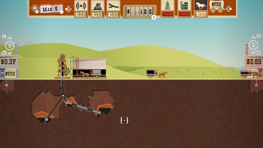 switch《石油骚动 Turmoil》是一款模拟经营类游戏,玩家在其中扮演投机者的角色,在19世纪尚未开发的北美土地上使用黑科技开采石油,通过堆积石油来控制价格,进而从中牟取暴力,竞买土地,打败竞争者,最终成为石油大亨。