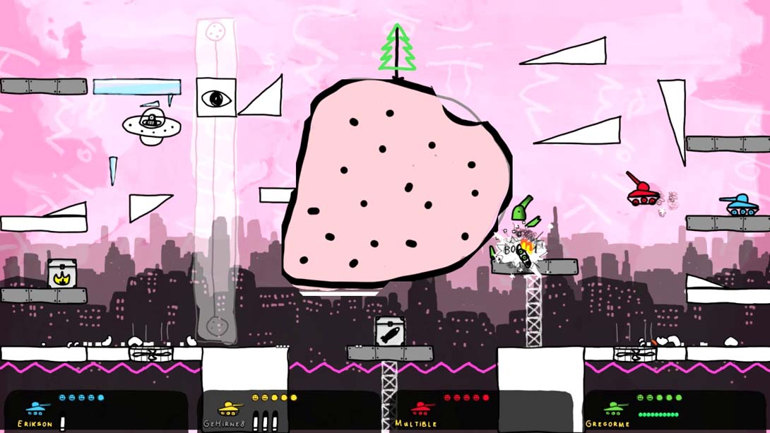 《Doodle Derby》是一款带有关卡设计、多人对抗要素的横板平台跳跃游戏,玩家需要操控小车,在充满险恶而巧妙的机关陷井中寻找到达检查点的最优路线。