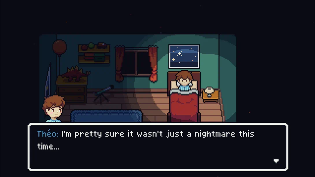 玩家扮演主角西奥(Théo),在一个雨夜醒来后发现家人神秘失踪,身处一个既熟悉又诡异的世界。游戏通过精细的像素画面和氛围营造,让玩家深刻感受到西奥的孤独与恐惧,同时探索幽灵、幻影潜伏的黑暗环境。