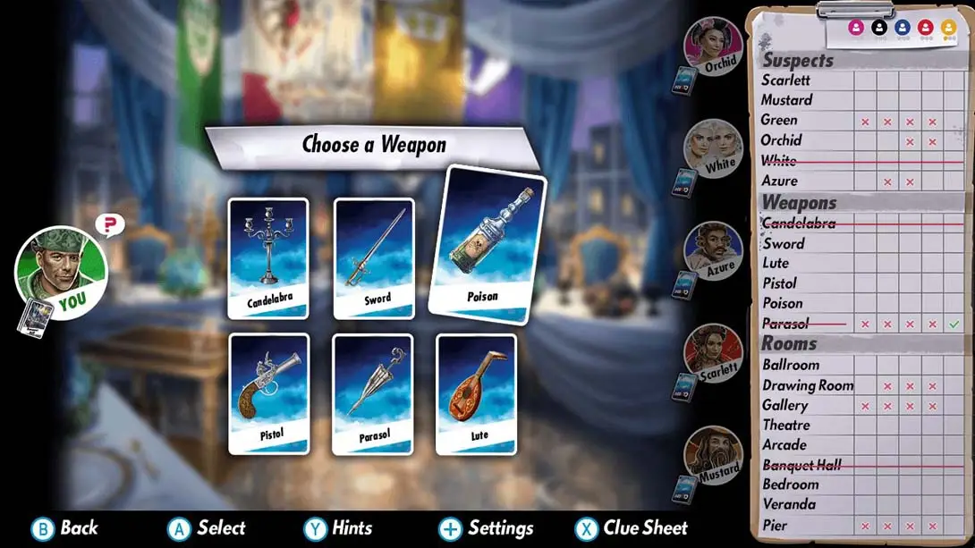 加入斯嘉丽、芥末、孔雀、格林、兰花和梅花,在都铎大厦度过一个充满谋杀和神秘色彩的夜晚。掷骰子在豪宅中走动并提问: