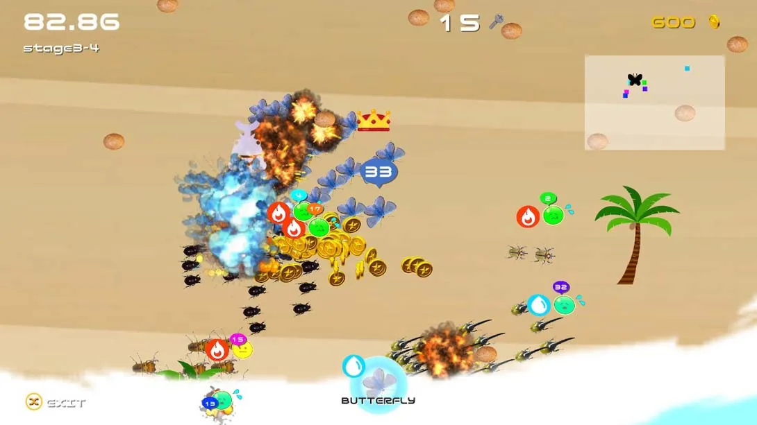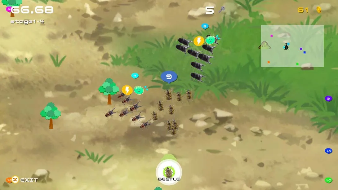 昆虫战争开始于各种各样的森林、沙漠和海滨地区。面对和击败敌对的昆虫,并将它们添加到你的军队,以扩大你的力量。组建最大军队的昆虫获胜!这里有各种各样的甲虫、鹿甲虫和蝴蝶!确定哪些是你擅长的,哪些是你不擅长的,然后把它们变成你的优势。