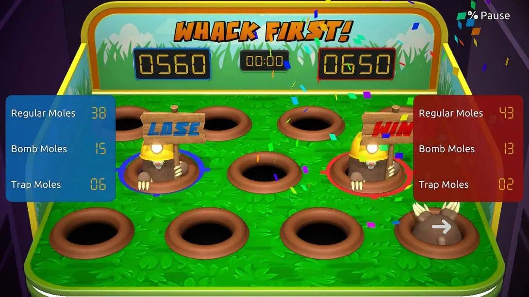 用你的木槌击中炸弹,它们将帮助你消除更多的痣!你会得到最高分吗?挑战你的朋友或家人来玩这个好玩的打鼹鼠游戏。