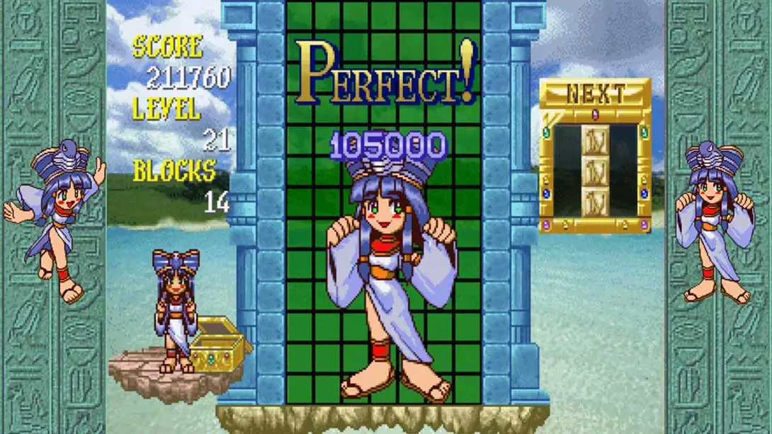 《埃及艳后》最初是Taito在1996年发行的一款街机益智游戏。这款游戏是1997年发行的家庭主机版本的复制品。