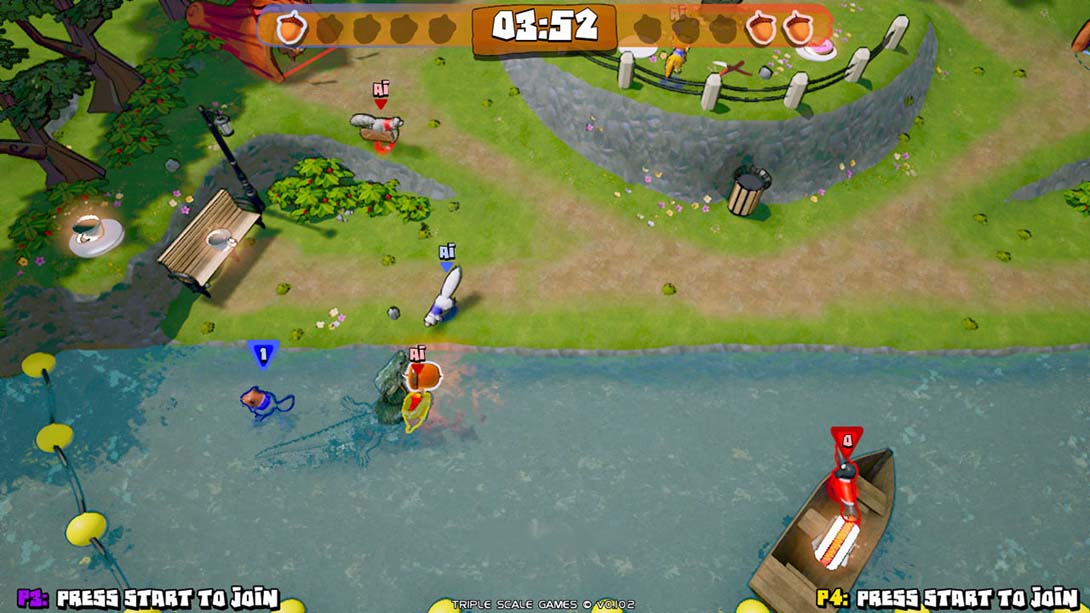 在这个疯狂野性的多人玩家游戏中跟你的队友大胆挑战你的对手,记着要时刻抓住食物来充饥,并猛撞你的对手来盗取他们的坚果啊!