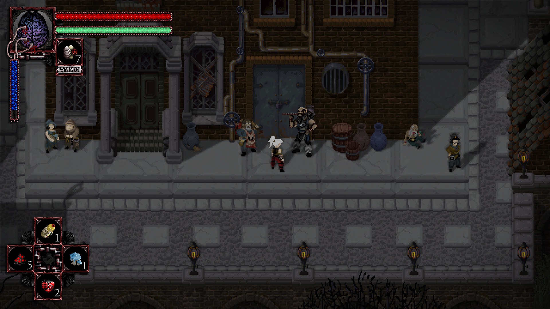 许多人诟病这个游戏的操作问题,说不好玩所以给差评。但吸引我的是这个游戏浓浓的克苏鲁元素和复古的像素画风。从与怪物和NPC的交互上看,氛围的渲染还是很到位的,各种怪物等都有完整饱满的背景来源,很符合我心中克系游戏的标准。剧情上,游戏开始并未交代过多的游戏背景,一切都要靠玩家通过与NPC交流、检查怪物图鉴来自己摸索。游戏剧情并不紧凑,更多的是探索和战斗。某些本应煽情的画面被描述得过于生硬,毫无感情可言。操作上,主角出手极快的近战攻击和怪物迟缓的移动速度让这个游戏变成了“回合制游戏”,奇怪的格挡判定让挡刀这个机制几乎雪藏,跑图时主角缓慢的移动速度也会让玩家抓狂。机制上,游戏没有小地图,让探索和跑图的难度加大。游戏没有货币系统,武器种类也是少之又少。总的来说,是个优缺点都很明显的游戏。
