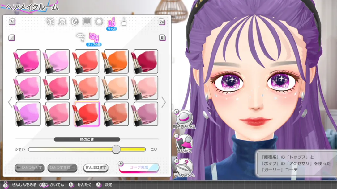 时尚搭配:游戏中的服装、发型、妆容等时尚元素由日本知名青少年时尚杂志《nicola》负责监修,玩家可以自由搭配多种风格的潮流单品。