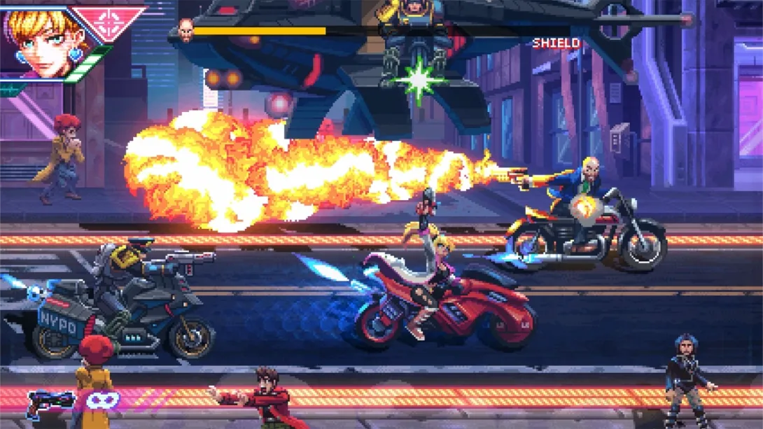 《霓虹地狱》是一款融合横版卷轴与画廊射击的混合体,战斗场景同时发生在前景与背景之中。当各派系为掌控反乌托邦纽约市而战时,