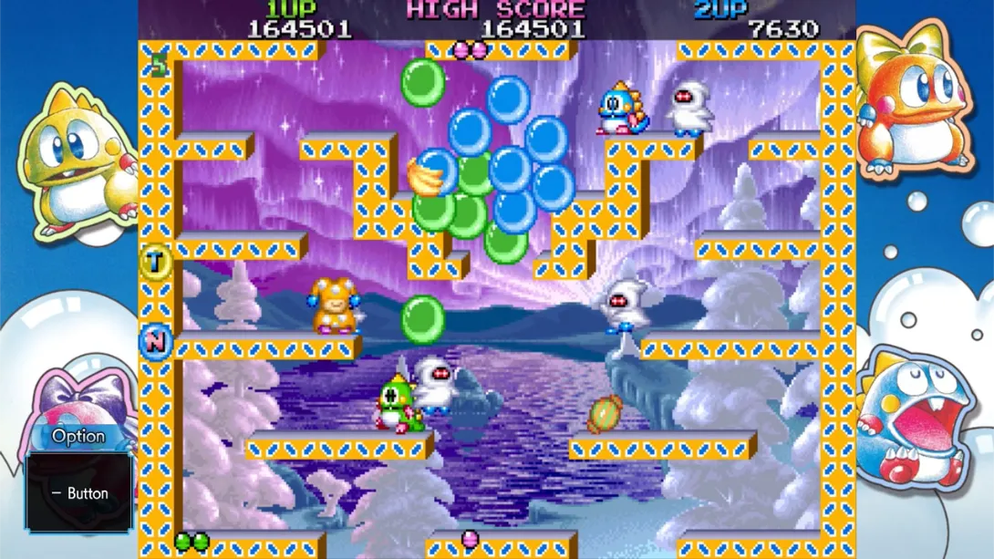 《泡泡龙交响曲》(Bubble Symphony)是Taito于1994年开发的街机游戏,后移植至世嘉土星平台(1997年日本独占)。作为《泡泡龙》系列续作,游戏新增两名女性角色库鲁伦和科罗隆,与经典角色Bubblun、Bobblun共同冒险。