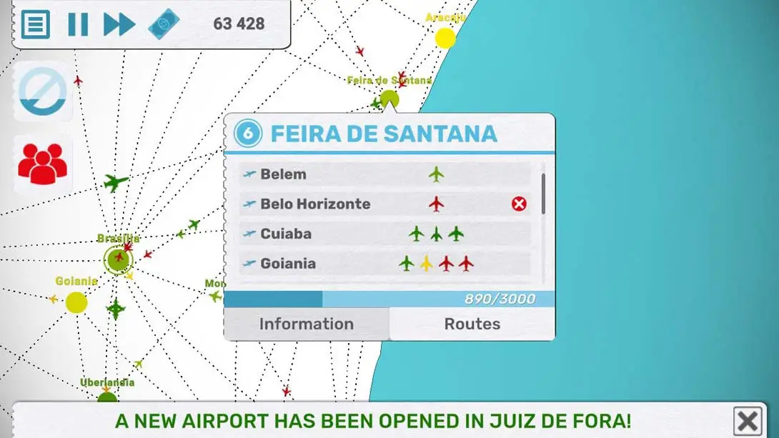 连接世界各地的城市,升级您的飞机和机场,提高效率和容量。但是在开发任何目的地时要明智地选择,因为你的资源是有限的,你也不想让任何一个机场超载,否则,你的公司就完了!