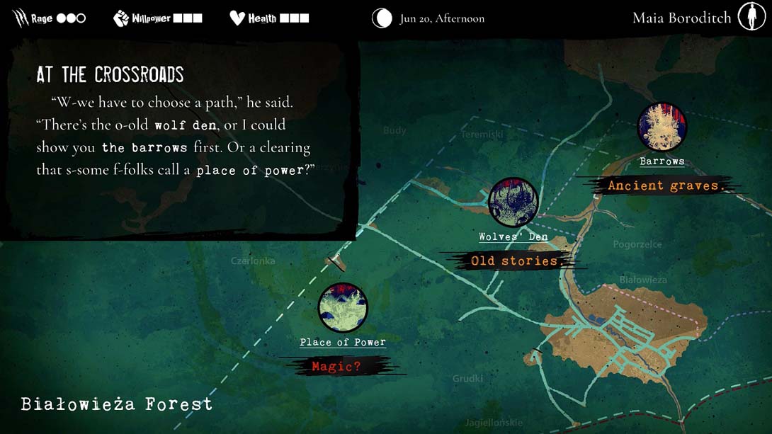 探索欧洲最后原始荒野的神话和怪物。扮演玛娅,谁到达古老的比亚索维尼亚森林,探索她的家谱。发现愤怒在冒险游戏灵感来自传奇桌面角色扮演游戏狼人:启示的体验。