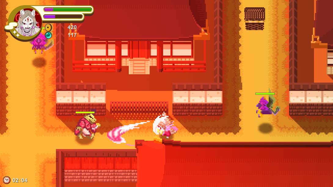 可以追溯到平安时代的怀旧圆点样式。您可以使用狼人和kaguya来战略性地征服舞台类似于街机游戏的高压垂直滚动动作游戏。