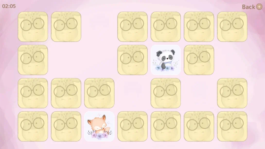 基础机制:游戏采用经典“翻对”记忆模式,玩家需在限定时间内翻开卡片,匹配相同图案。每一对成功匹配的卡片都将解锁精美的手绘插画,内容涵盖可爱动物、自然风景与童话元素。