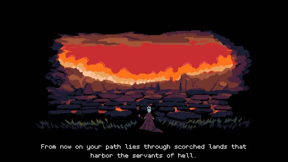 游戏采用手工绘制的像素美术风格,场景阴郁诡谲,角色设计富有张力,配合暗黑氛围音乐,完美契合“亡灵之王”的主题基调。