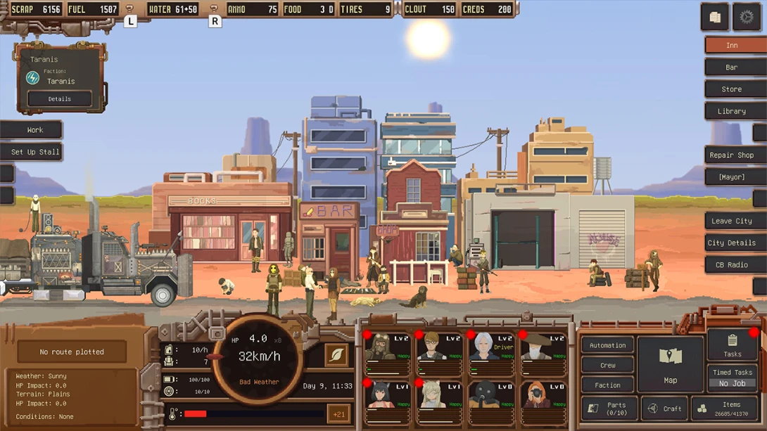 游戏中充满装甲车队遭遇战、不死族突袭、神秘信号求救等随机事件。你的每一个决策都将影响声誉、派系关系与剧情走向——是成为守护正义的“路面侠”,还是唯利是图的商人,抑或令人闻风丧胆的强盗,全由你决定。