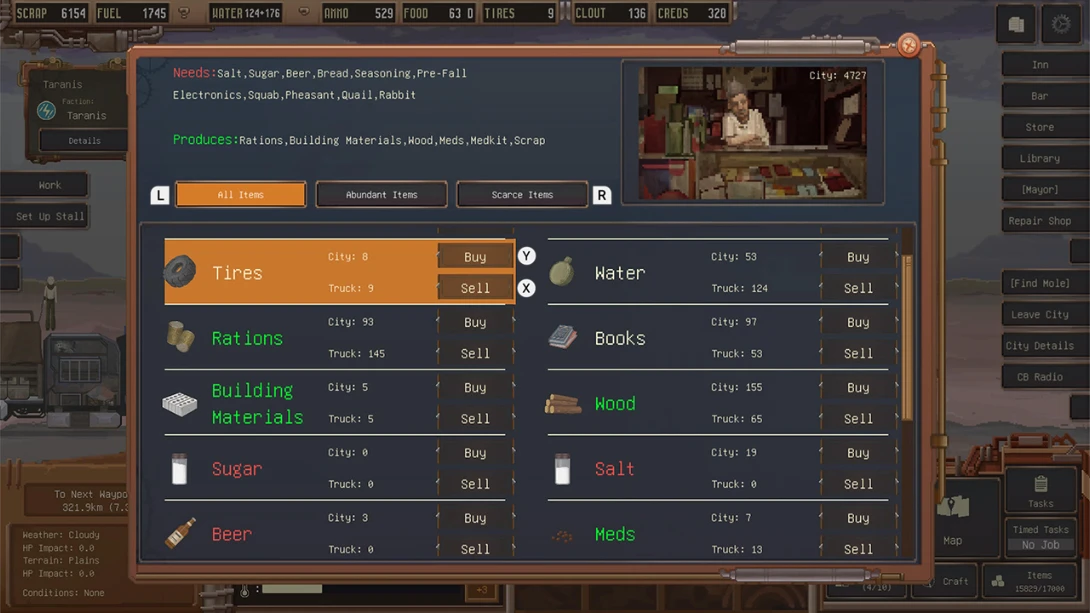 在废墟中搜寻食物、零件、燃料等关键资源,建立跨定居点的贸易路线,控制资源流动以发展城市。合理分配人力与物资,升级基础设施,吸引居民与冒险者加入,逐步将破败小镇建设为繁荣的废土中心。