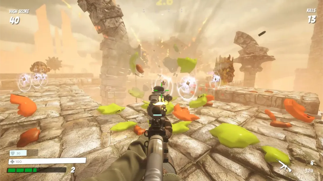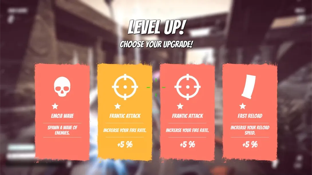 玩家仅携带一把手枪登陆岛屿,面对成群结队、行为各异的敌对表情符号——它们会冲锋、跳跃、自爆,甚至召唤援军。每波敌人都带来更高压力,考验反应与战术决策。