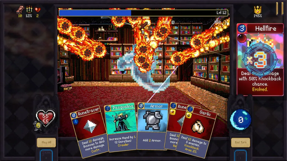 玩家将操控熟悉的“爬行者”角色,在多层地牢中探索、撞开宝箱、获取“宝石”强化卡牌、进化武器,并召唤《吸血鬼幸存者》中的幸存者触发连锁反应。游戏保留了原作的幽默感、经典音效与“再来一局”的成瘾性循环,同时引入了墙壁阻挡、铲子挖洞等全新交互元素,探索感更强。
