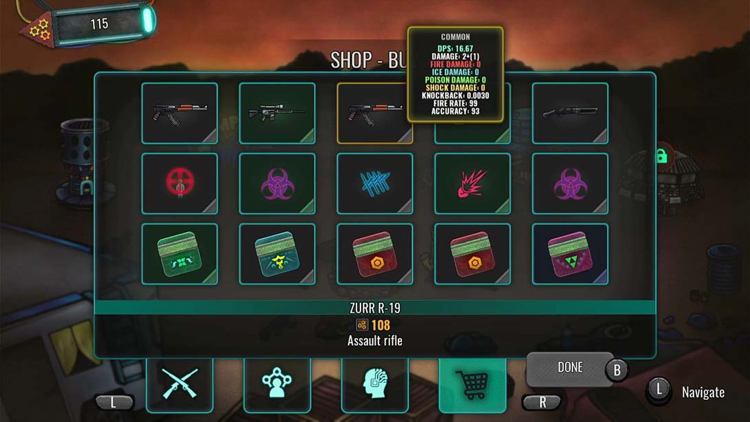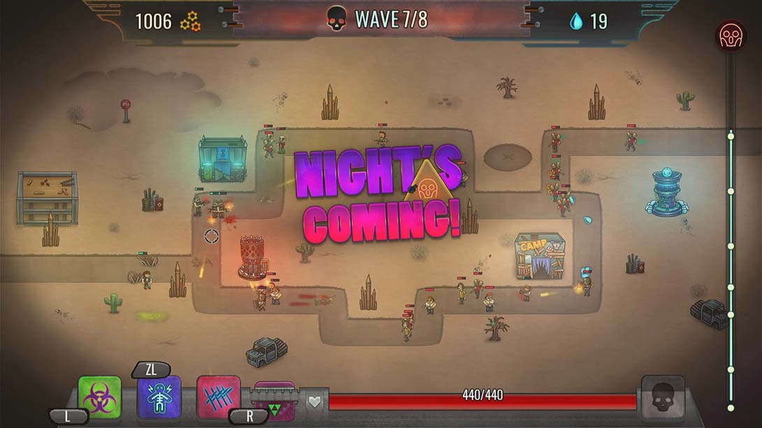 switch《死亡地带 Dead Ground》是一款含有Roguelike元素的策略类游戏。基于塔防类游戏的基础,玩家将会在每一个关卡得到随机的枪支、技能和增强,并控制你的英雄配合你的完美防御抵御敌人的进攻。