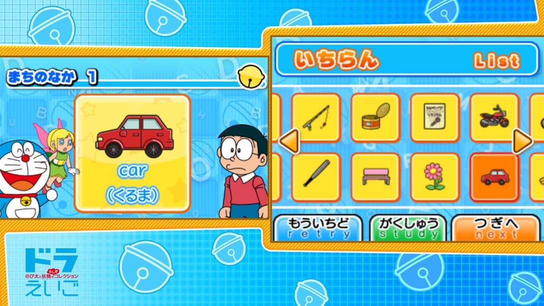 这是一款学习英语基础的游戏。利用哆啦A梦的形象来激励初学者,通过「听、读、写」快乐学习英语。大雄将和小仙子一起帮王子收集 apple, cap, pen 等收藏品,并奉献给仙子国的王子。本作中还收录了字母练习、英语单词接龙等小游戏。
