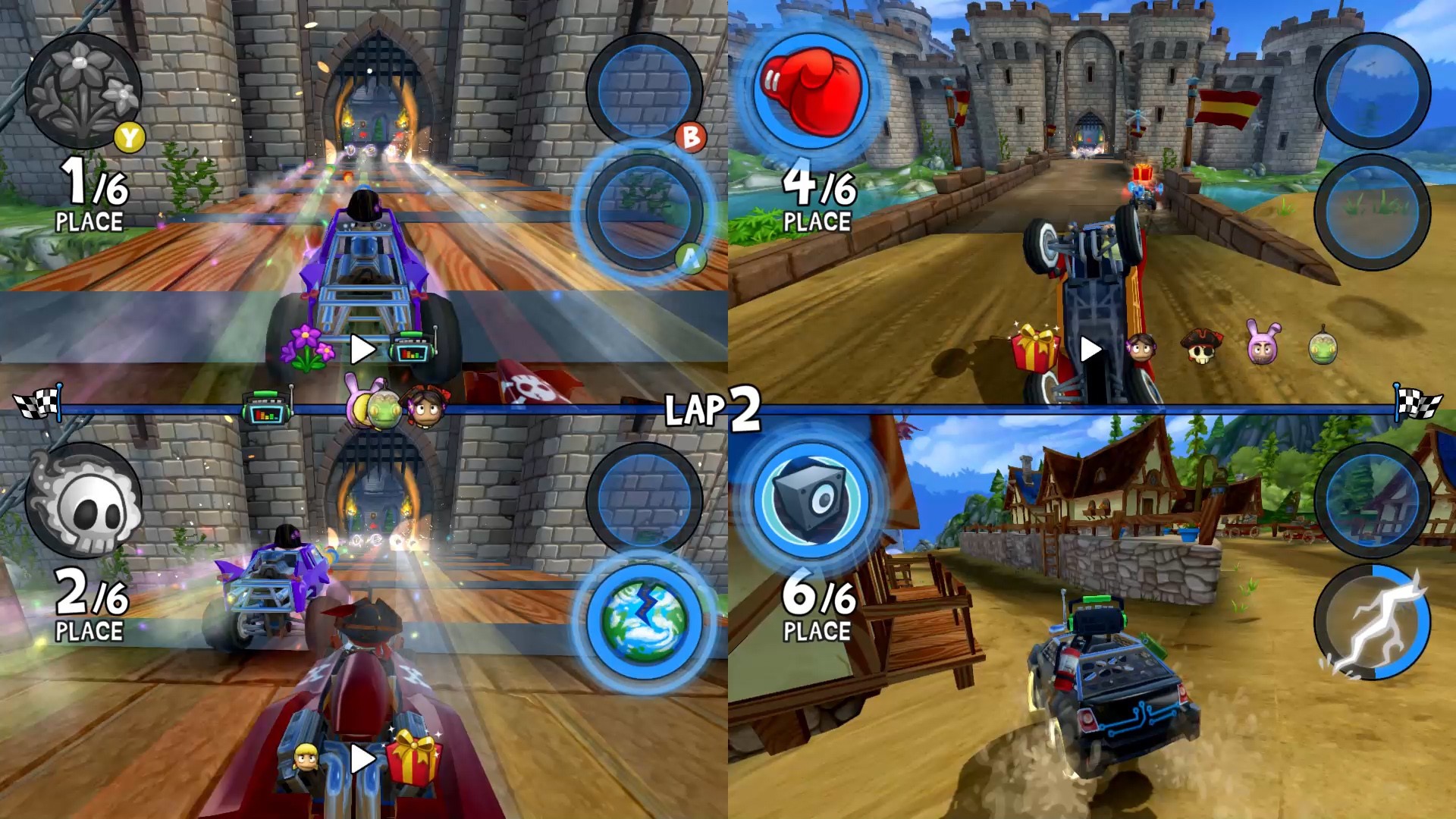 switch《沙滩赛车2岛屿冒险 Beach Buggy Racing 2 Island Adventure》是一款卡丁车竞速游戏,着重分屏乐趣和游戏规则自定义。可以单人驾驶或合作玩冒险模式。
