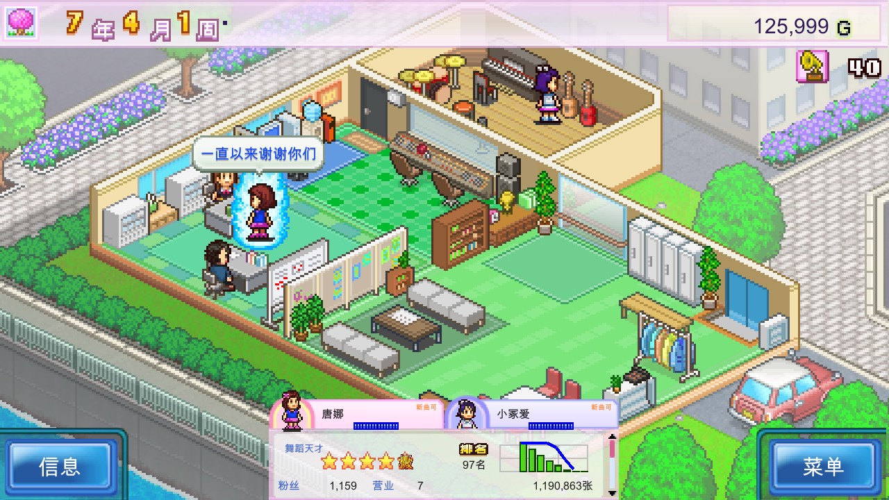 《百万乐曲物语》是一款休闲类模拟游戏,扮演音乐经纪公司董事长、培养明日之星!首先,要决定新人的唱片公司。反复进行课程培训打好基础,就可以在新人甄选上脱颖而出并成功出道。出道后可以参加各地的营业活动、制作属于自己的独一无二的唱片,通过举办演唱会与粉丝进行互动,让人气噌噌噌地上升吧。积攒一定人气的话,说不定还能受邀担任著名综艺节目的嘉宾。