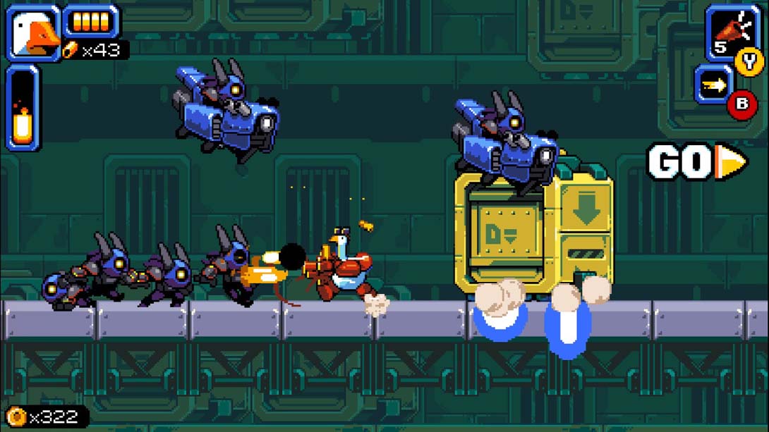 switch《暴走大鹅 Mighty Goose》是一款奖金猎鹅的横版射击动作游戏,超细腻的像素风格,爽快战斗模式,多重关卡挑战竞技赛,经典街机像素风格,多种战斗场面,总之,运用好角色的技能和装备,就能很好的升级和通关了。