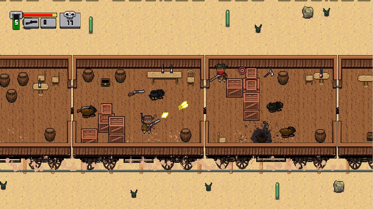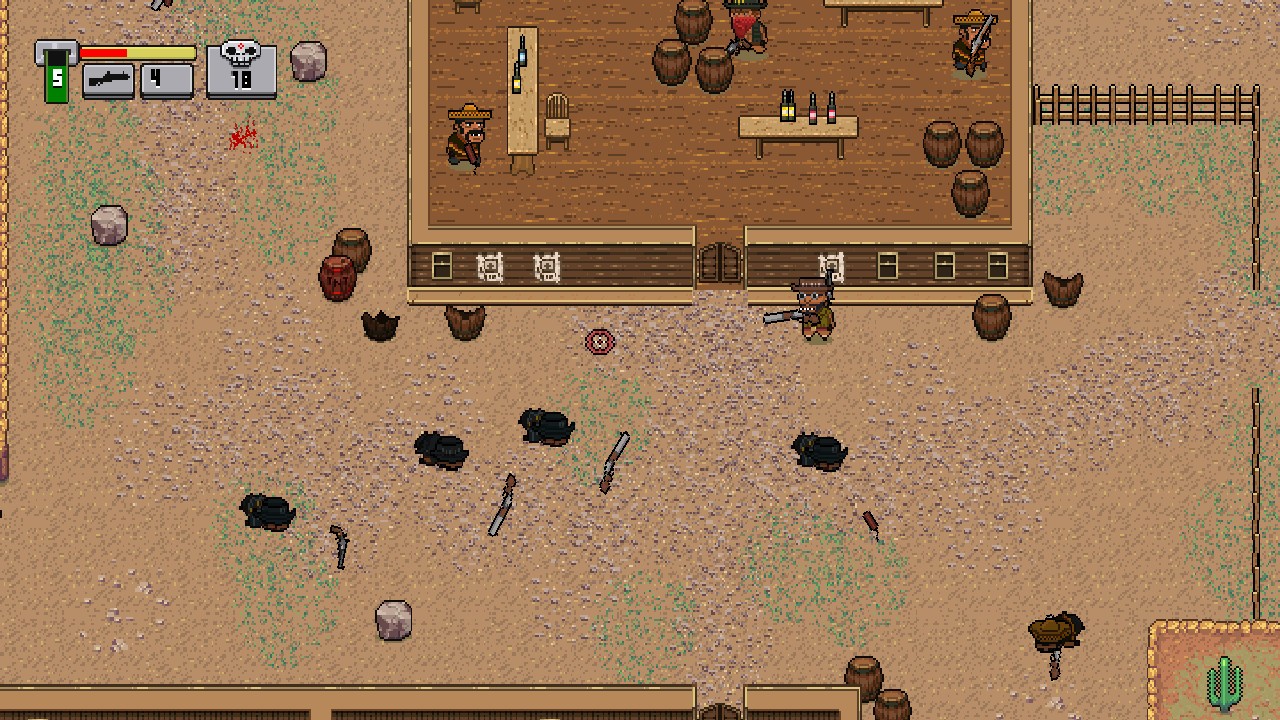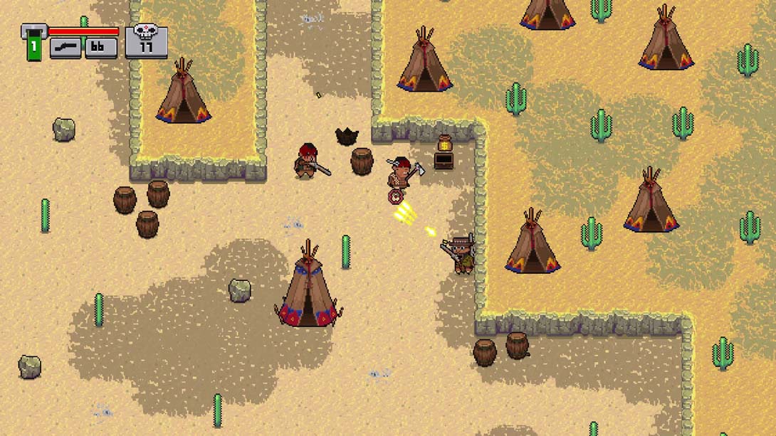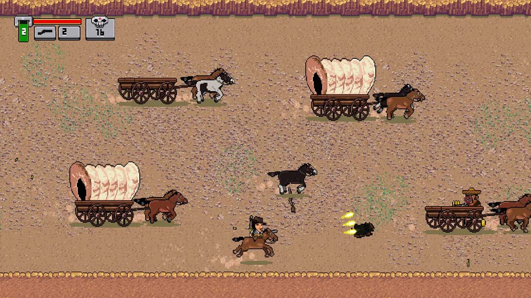 是时候选择一个英雄并穿越成群结队的致命敌人了:愤怒的印第安人、土匪,甚至是一些拿着未来派等离子炮的外星人。您必须在所有这些具有挑战性的关卡中保持活力,还必须从倒下的敌人那里收集战利品。还有一些事情要做 – 发现死尘的秘密,并与酒吧老板交谈,他们会向您出售最有用的设备,以克服任何障碍或在您拯救被绑架女孩的途中住旅馆。