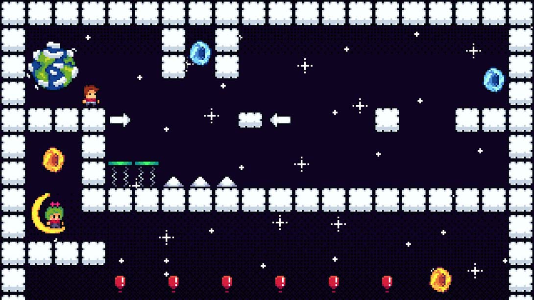 跳过云彩、气球、蹦床并进入特殊的门户,以达到这个由像素艺术制作的精美游戏的结局。
