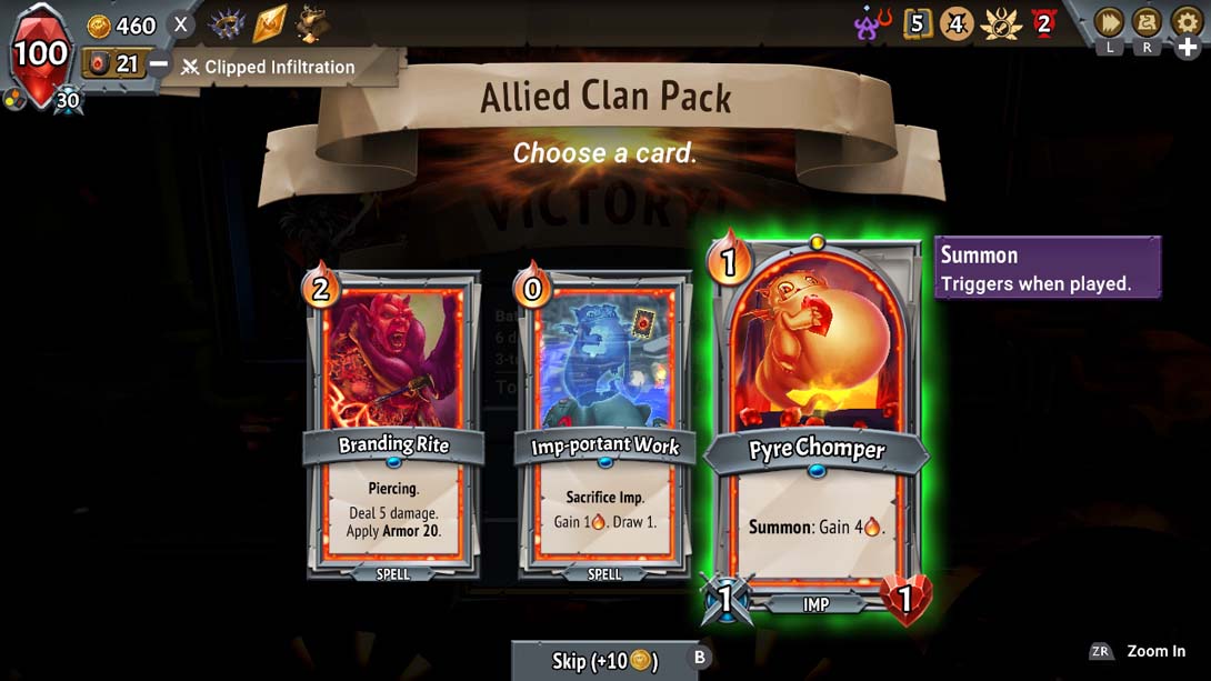 要夺回地狱,你需要通电。仔细选择您的路线,不同的地点会产生不同的好处。升级你的英雄,获得契约碎片及其好处,招募强大的单位,升级卡片,获得被动奖励,或复制你牌组中的任何卡片。
