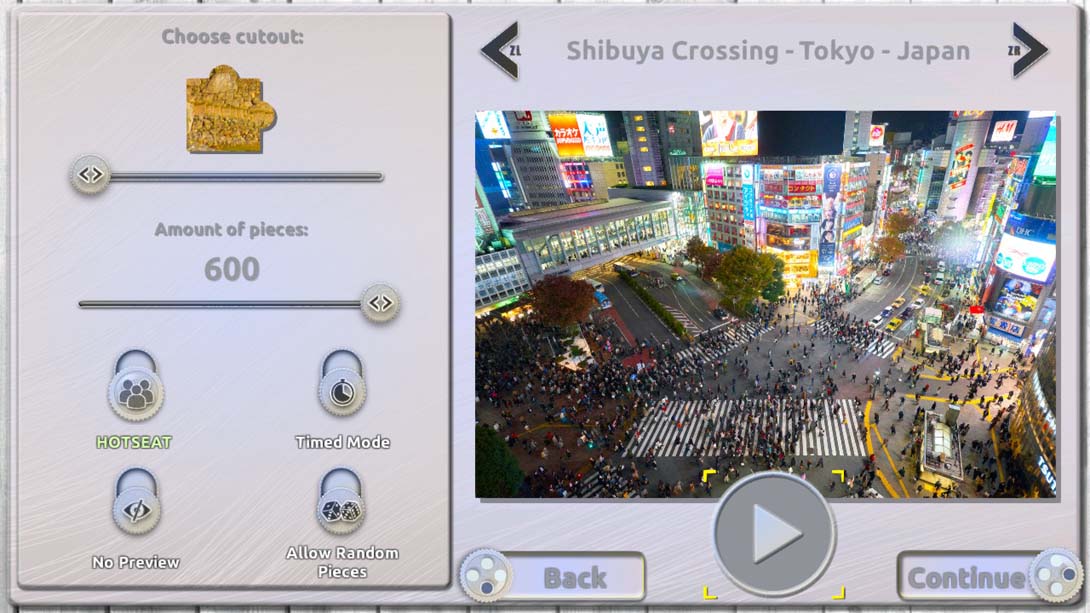 享受100个精选的,高质量的,来自世界各地的城市的图像解决。改变你的拼图的大小,以增加难度,解决高达600块的拼图。您也可以与多达4名玩家一起解决拼图游戏!•100个高质量的拼图•最多4人本地多人游戏•4种不同大小的拼图(30/120/300/600片)•简单易用的触摸控制•使用自动保存功能,继续您离开的地方•时间挑战模式以下是一些可供选择的谜题:•美国纽约市东京,日本•英国伦敦巴黎,法国•中国上海罗马,意大利•荷兰阿姆斯特丹开罗,埃及巴西的里约热内卢•韩国首尔•还有更多……!