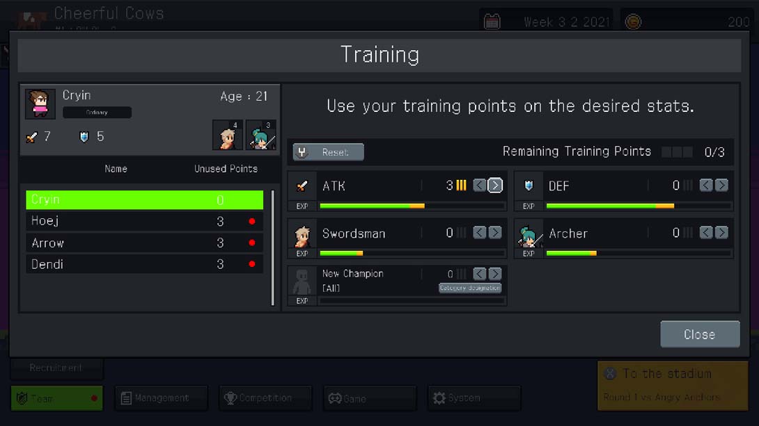 你可以通过招募更好的球员或训练现有球员来建立一支更强大的球队。每个玩家都有不同的攻击/防御能力和冠军技能水平。有些球员的特点甚至可以让他们拥有与众不同的技能。兼顾球队资金和球员技术,有效管理球员。