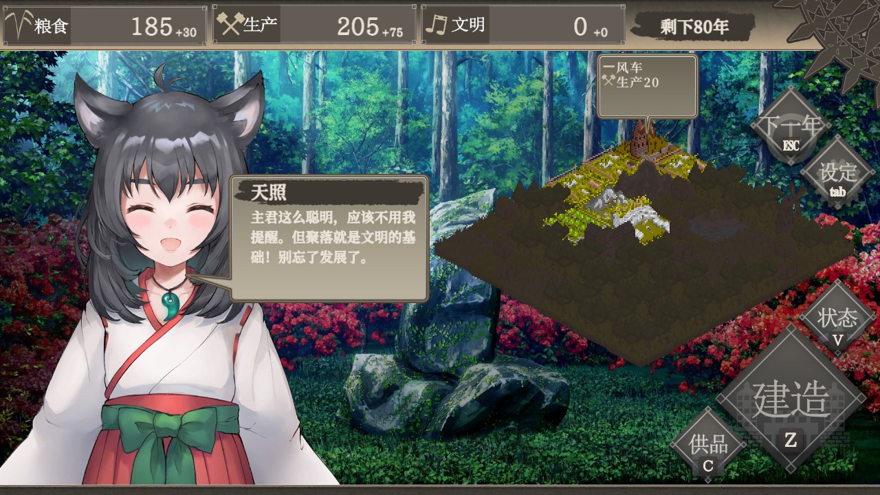・你将和被称为「神托巫女」,与神话中地母神同名的少女一起培育文明。