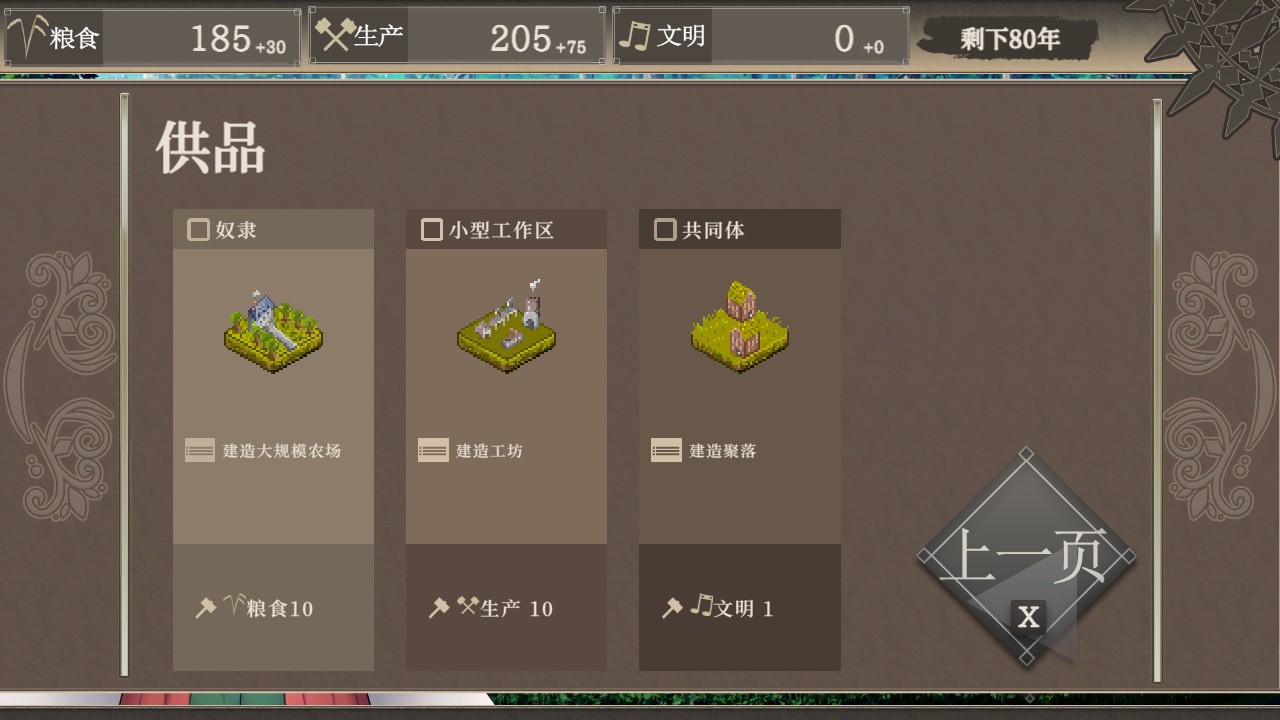 ・本游戏是简单易玩的回合制模拟游戏。玩家透过建筑与开拓等方式,在百年间培育出文明。