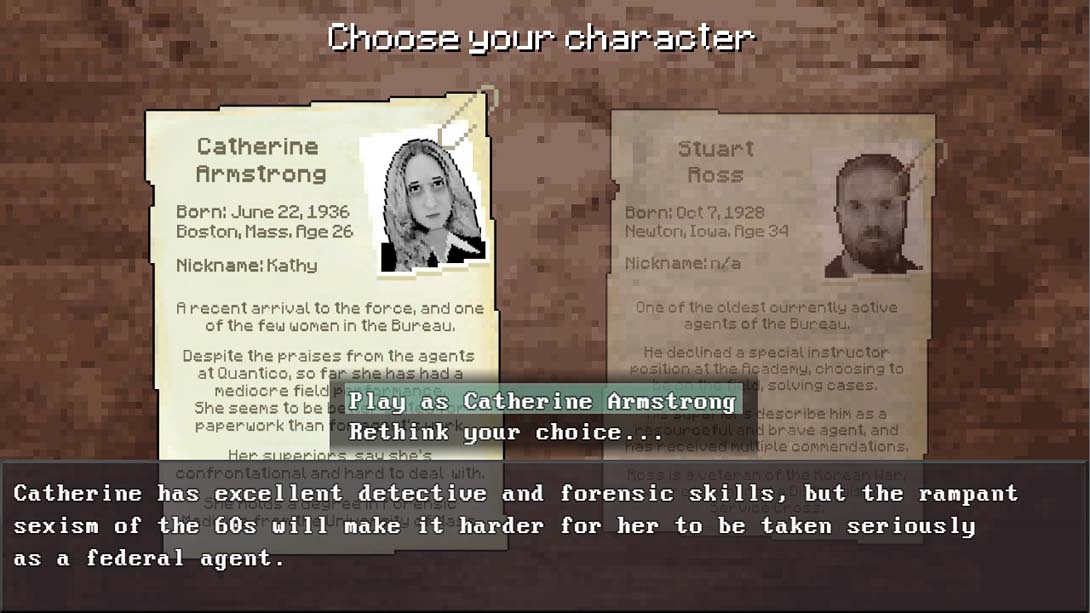 选择扮演联邦探员凯瑟琳·阿姆斯特朗(Catherine Armstrong),一位具有出色科学技能的年轻新兵,或者扮演斯图尔特·罗斯(Stuart Ross),一位街头聪明的老手。他们独特的技能和个性将改变故事的展开方式。