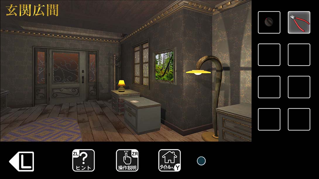 在有玄机的房子里探索各种各样的区域解开谜题吧。能平安逃脱吗——Regista×真不错的逃脱游戏第19弹! !■游戏系统是逃脱游戏(解谜冒险游戏)。※用光标选择画面,解开各种机关来进行游戏。■故事迷路了,在暴雨中不知所措这时,我看到一幢亮着灯的洋房我想避雨,走进了馆的玄关,背后传来咔嗒一声不信任门把手把手搭上去,打不开这幢奇特的洋房好像被关起来了……那么,我也很在意外面的天气。如果你不离开这里,