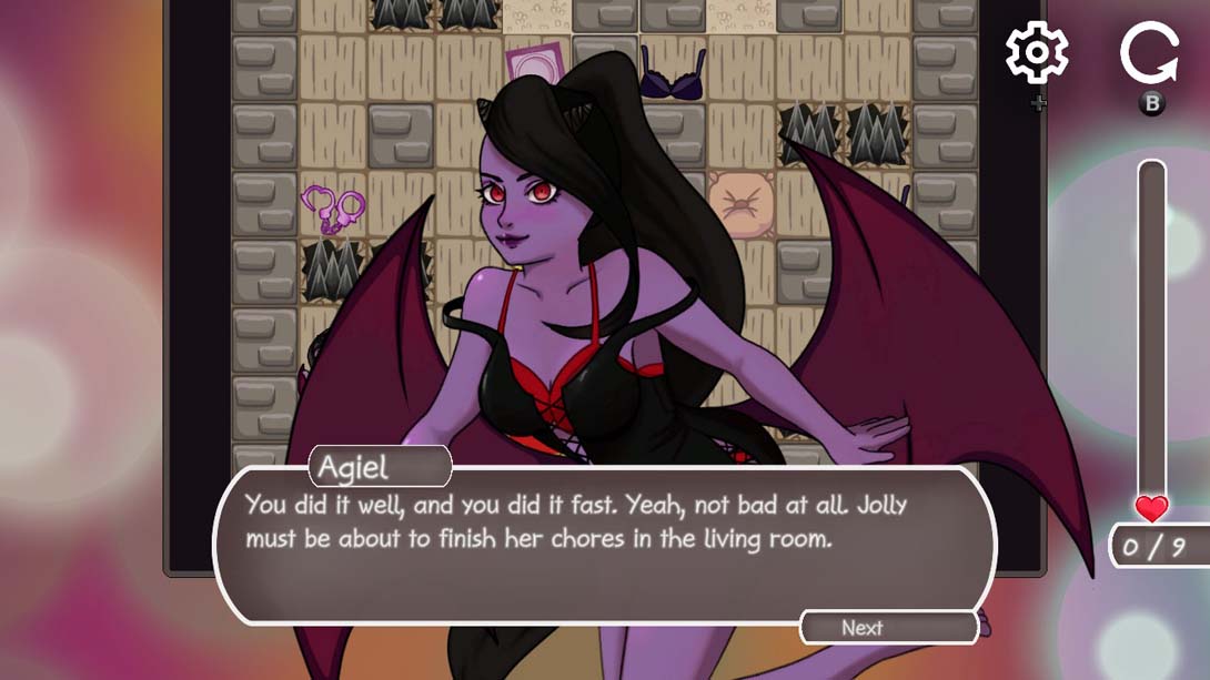 每个怪物女孩都有独特的技能,如穿墙、推物等。解决难题以增加她们的欲望。
