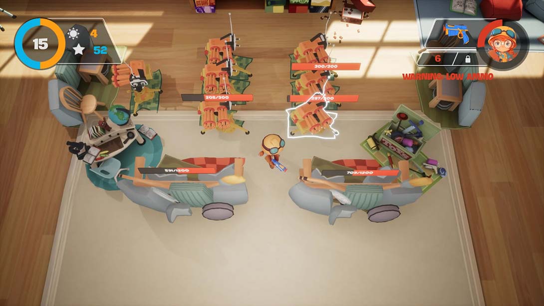 《安眠》是We Are Fuzzy工作室制作的一款快节奏射击游戏。游戏拥有一定的自由建设要素,玩家需要在白天搭建枕头堡垒,来应对夜晚降临后大波怪物敌人的攻势。飞镖枪、水枪和遥控炮台等玩具都是对抗这些无情的怪物的武器。玩家可以从被击倒的敌人身上收集星星,用来升级自己的技能,购买升级道具以及解锁新武器。