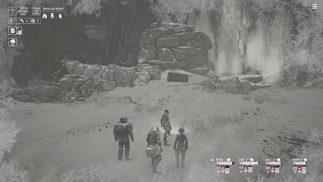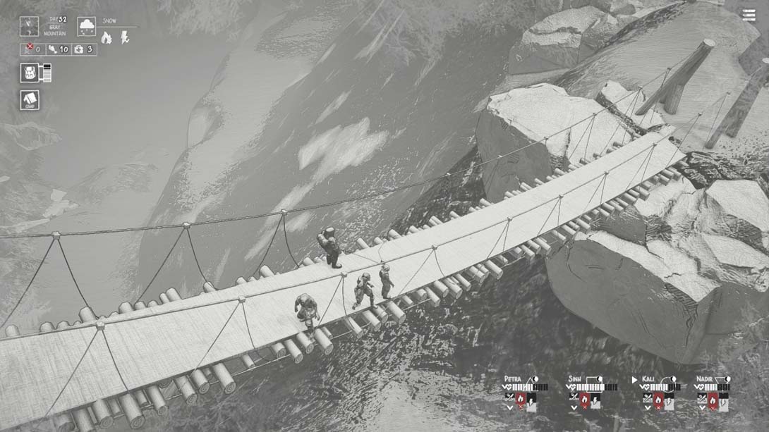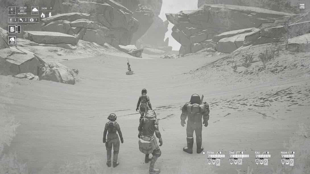 管理您的食物、设备和药物,并保护团队免于疯狂和绝望。在野外寻找和收获重要资源,让您的团队保持活力。
