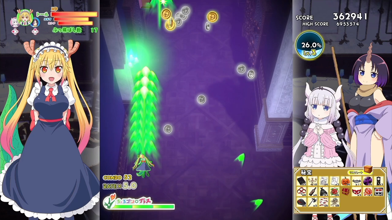 《小林家的龙女仆》是一款由知名漫画动画作品《小林家的龙女仆》改编的飞行射击游戏。