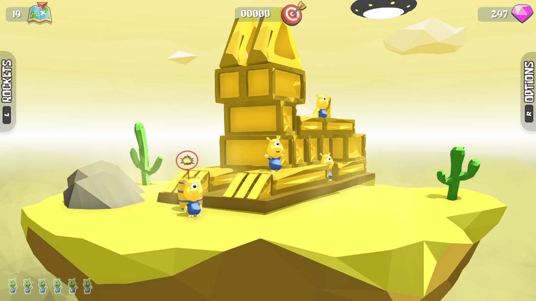 在岛上自由旋转,寻找隐藏的外星人和 TNT 枪管。