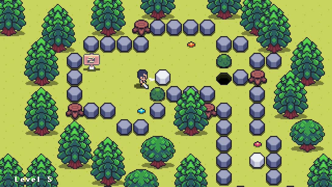 滑动积木的脑筋谜语在拍打岩石中得到一个幻想冒险扭曲,在一个复古的谜题游戏中,你扮演一个中世纪的宝藏猎人,带着一把剑和一个嗜好到处敲打石头!《Slap the Rocks》采用了自上而下的像素艺术风格,玩家可以探索30个关卡,每个关卡都有一个由石头、灌木和树桩组成的迷宫,玩家的目标是将白色岩石击入洞中并滑动,从而创造出一条通往宝箱的道路!