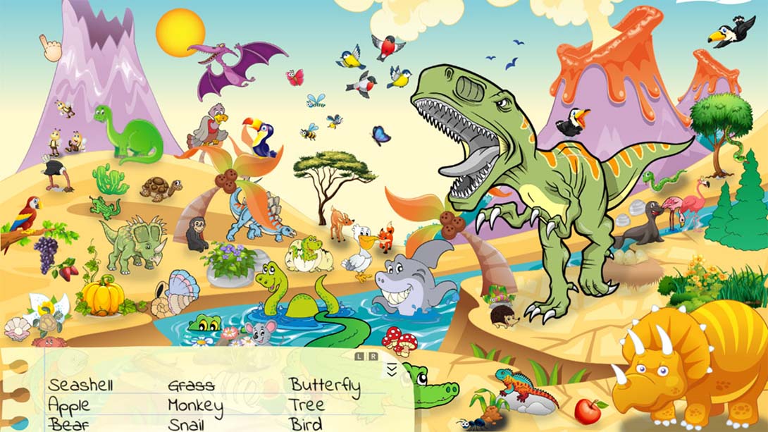 《世界各地》可以由任何年龄的孩子玩。由于全声控界面,即使是蹒跚学步的孩子也能自己探索隐藏物体的图片。他们不需要会读书就能有成就感。以一种有趣的方式教授专注和注意力。
