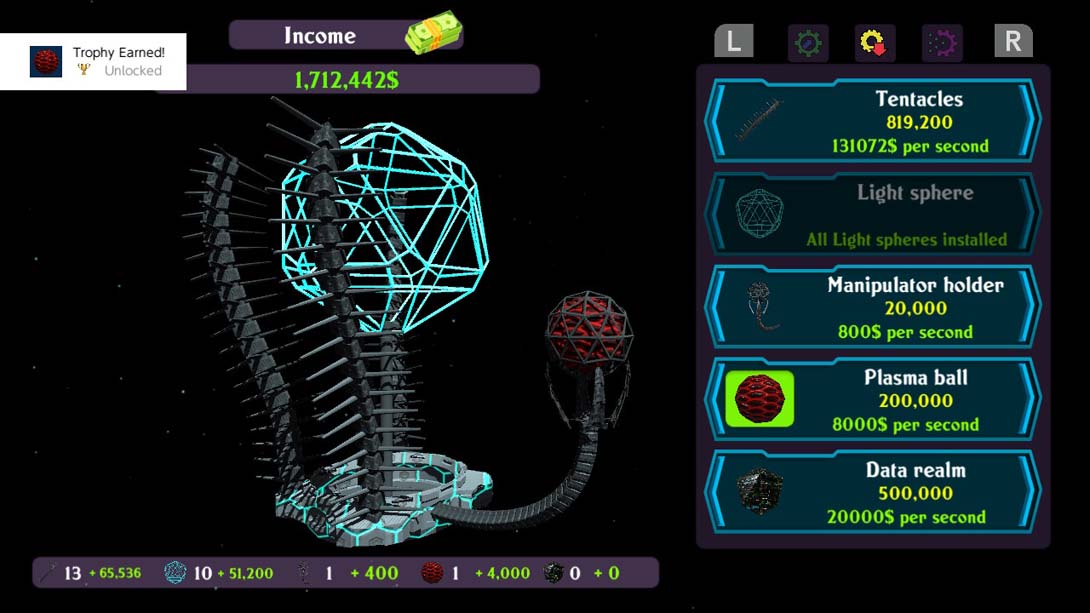 -触手、プラズマボール、光球などのエイリアンエンジンの新しい要素を購入して、収入を増やしましょう。
