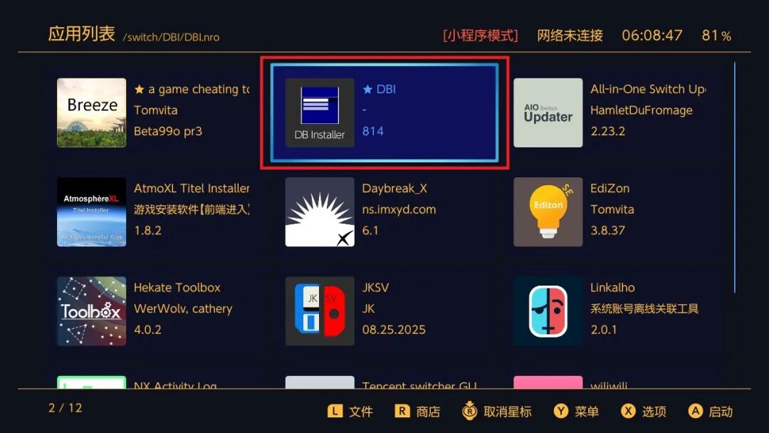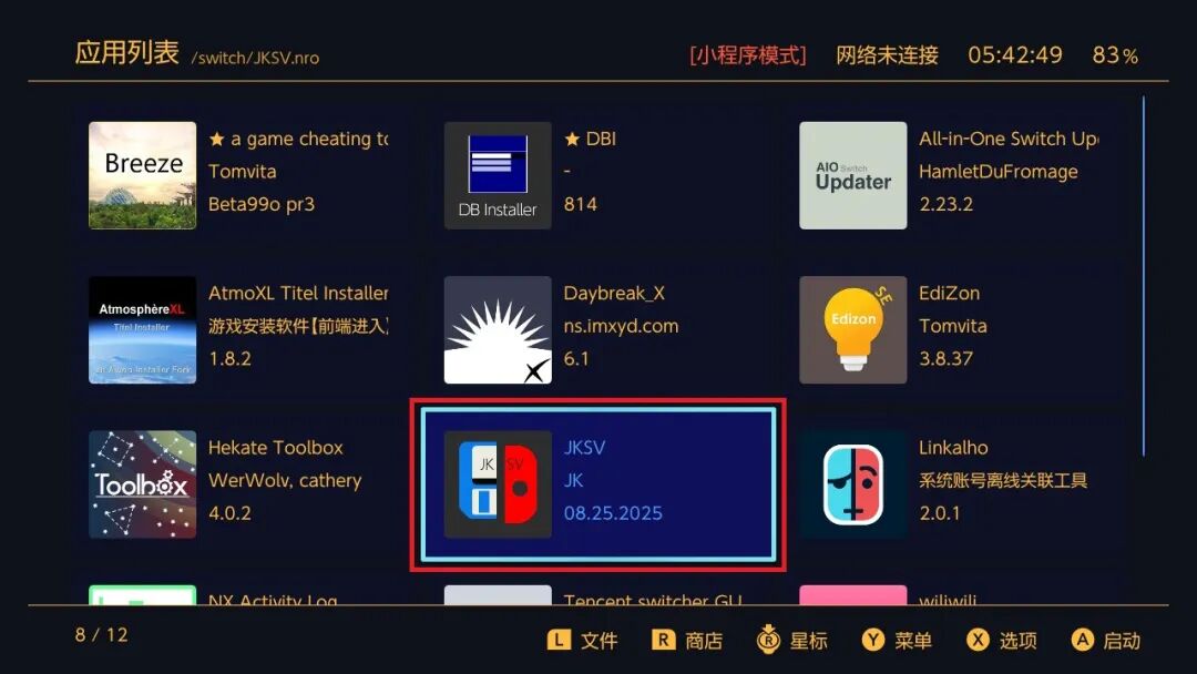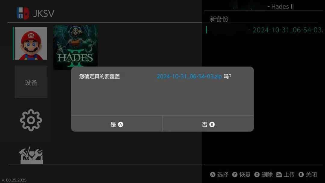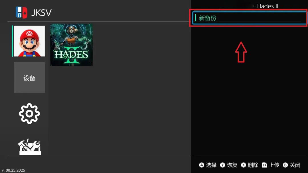 注意:如果备份出现错误提示,重启后在主页进高权限模式操作:打开hbmenu或按住R进入任意游戏,再打开JKSV工具