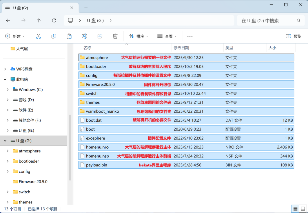 将下载好的大气层整合压缩包进行解压,然后将里面所有的文件都复制到SD卡根目录。