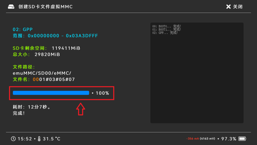 4.耐心等待进度条结束,然后点击右上角关闭