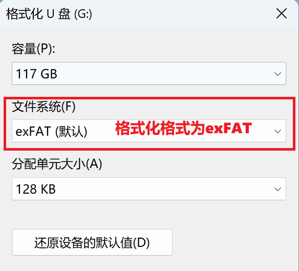 格式化格式为exFAT